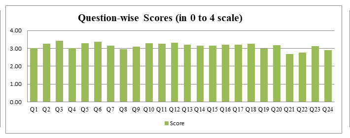 | 22 | How you are satisfy with the library facilities (i.e. Library and reading room facility, library books and journals, Library Staff approachability, Internet facility/Wi-Fi...) | 2.77 |