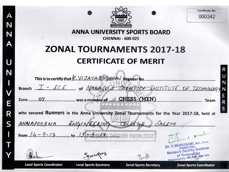 K.VIJAYARAGAVAN, Anna University Zonal Tournaments for the year 2017-18
