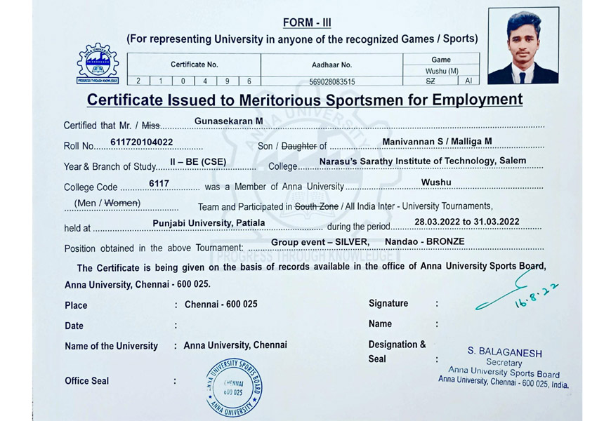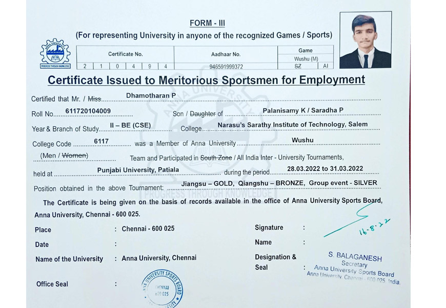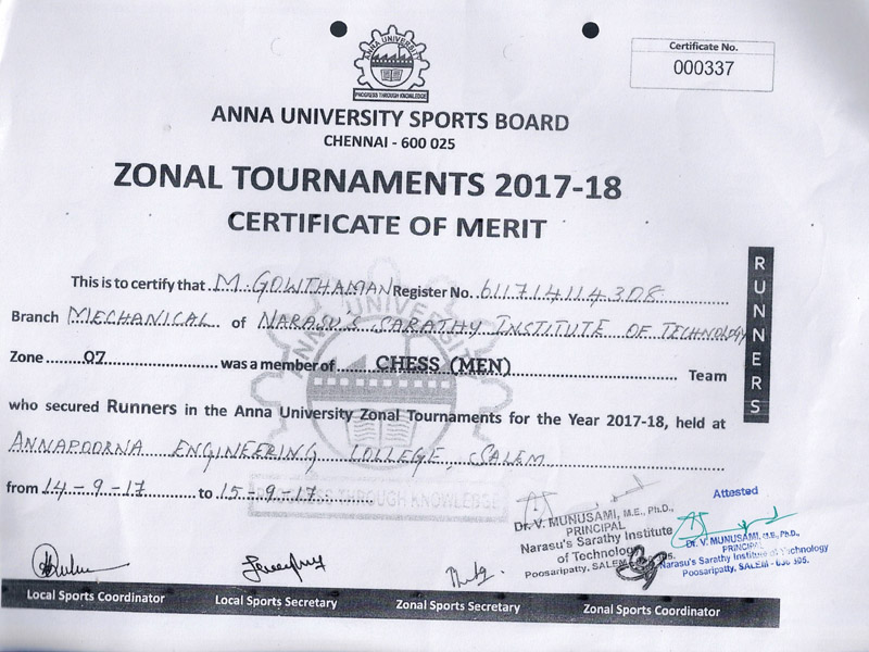 M.GOWTHAMAN, Anna University Zonal Tournaments for the year 2017-18