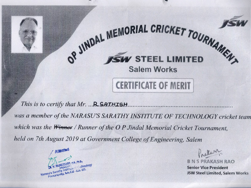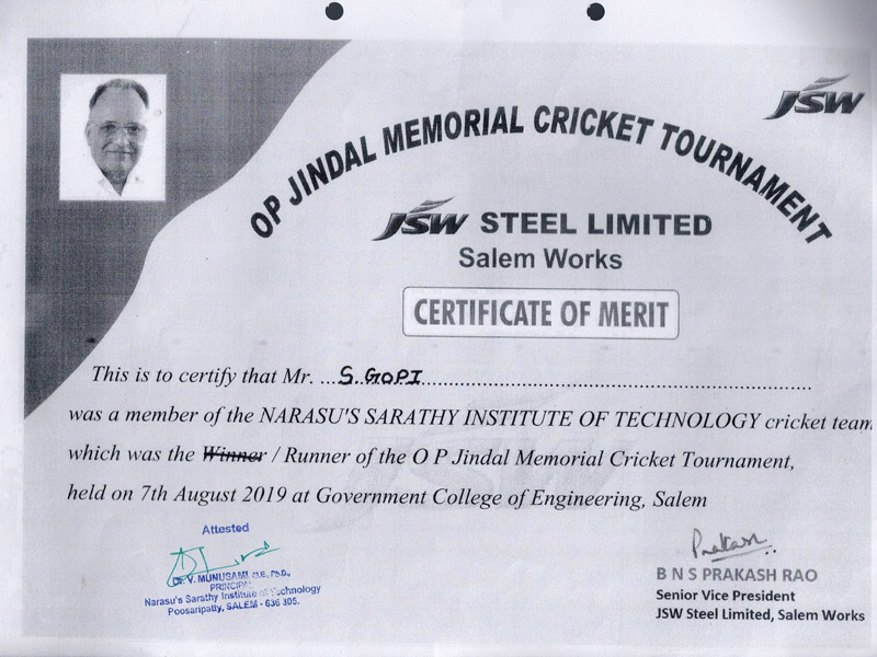 G.PARTHASARTHI OP Jindal Memorial Cricket Tournament