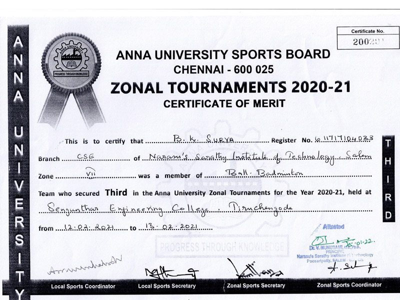 A.NARESHKUMAR Anna University Zonal Tournament 2020-21(Ball Badminton)