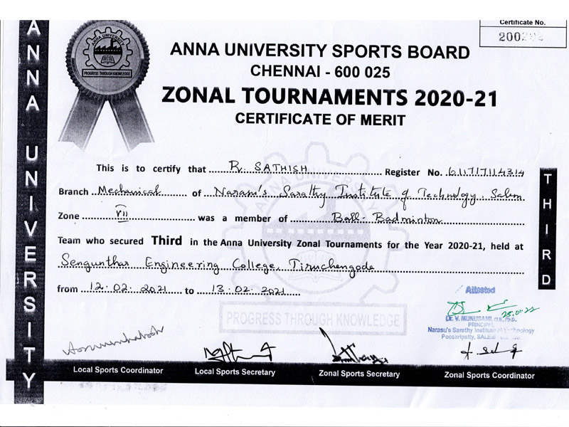 R.SATHISH Anna University Zonal Tournament 2020-21(Ball Badminton)