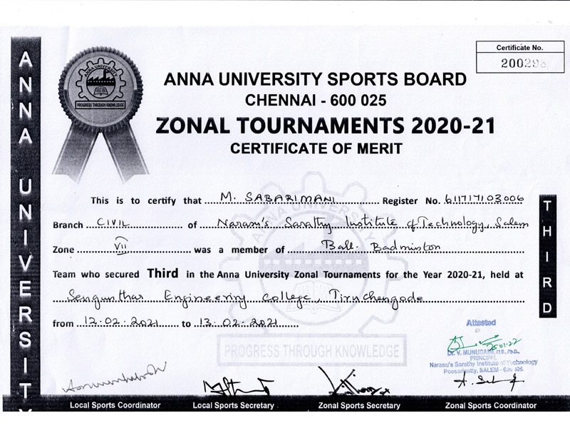M.SABARIMANI Anna University Zonal Tournament 2020-21(Ball Badminton)