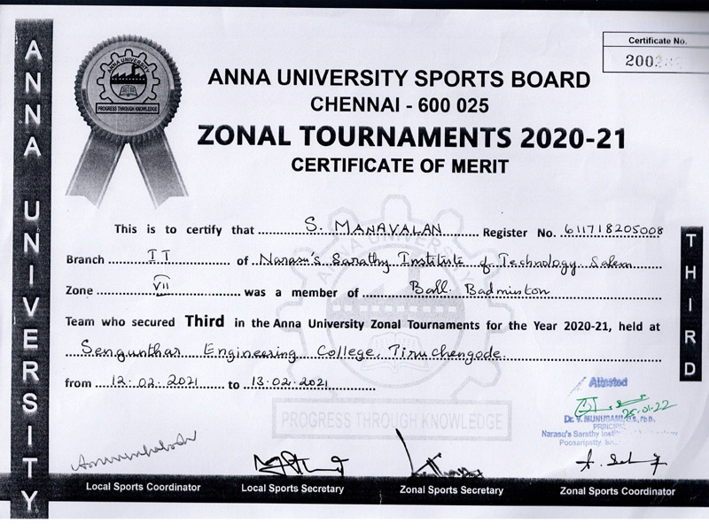 S.MANAVALAN Anna University Zonal Tournament 2020-21(Ball Badminton)