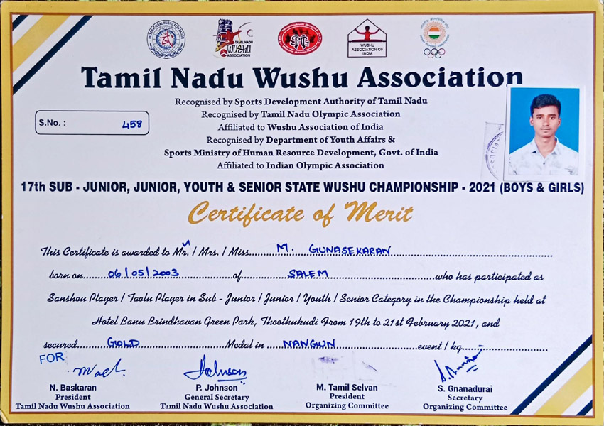 M.Gunasekar18th Junior, youth& Senior State wushu championship 2021-22(Boys& Girls)