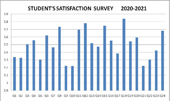 | 22 | How you are satisfy with the library facilities (i.e. Library and reading room facility, library books and journals, Library Staff approachability, Internet facility/Wi-Fi...) | 3.303 |