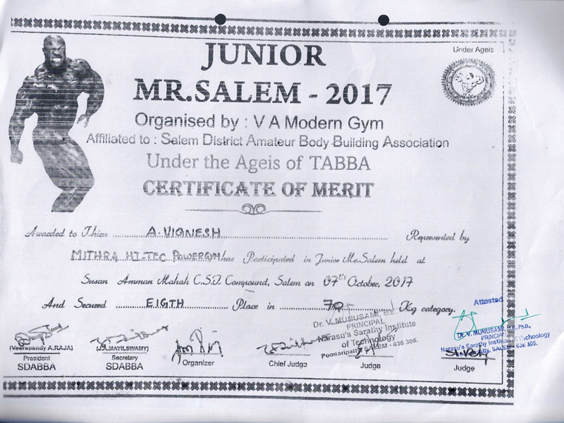 A.VIGNESH, Anna University Zonal Tournaments for the year 2017-18