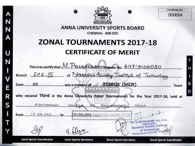M.PRABHAKARAN, Anna University Zonal Tournaments for the year 2017-18