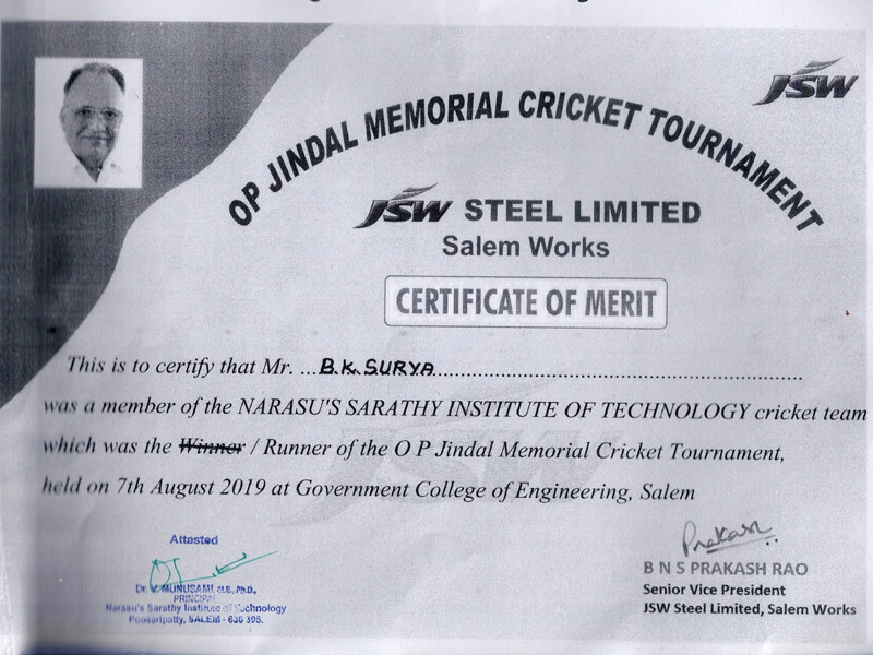 B.K.SURYA OP Jindal Memorial Cricket Tournament