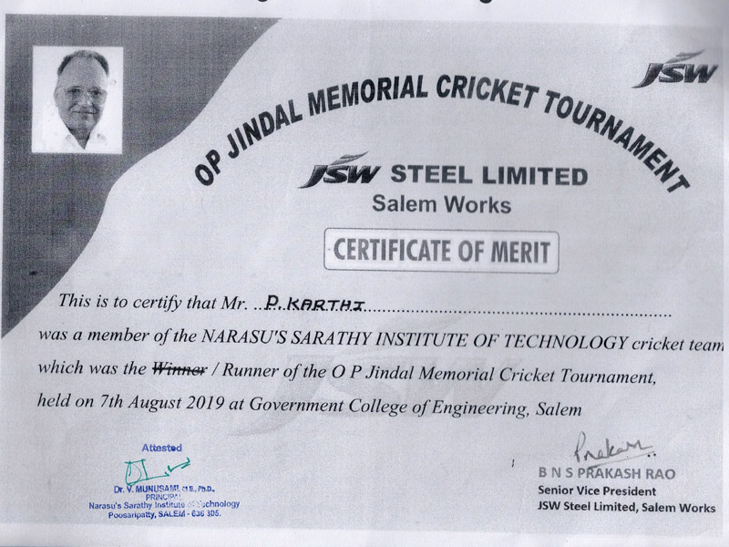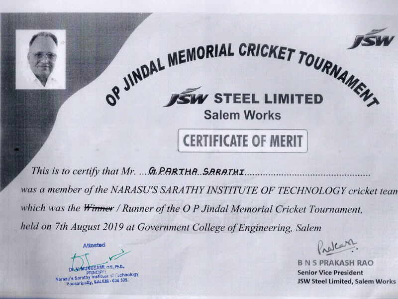 G.PARTHASARTHI OP Jindal Memorial Cricket Tournament