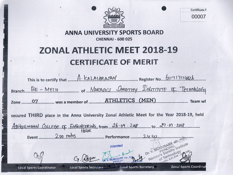 A.KALAIYARASAN Anna University Zonal Athletic Meet for the year 2018-19(200 Meters)