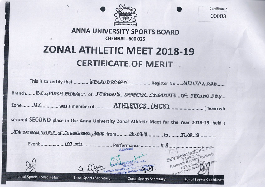 A.KALAIYARSAN Anna University Zonal Athletic Meet for the year 2018-19(100 Meters)