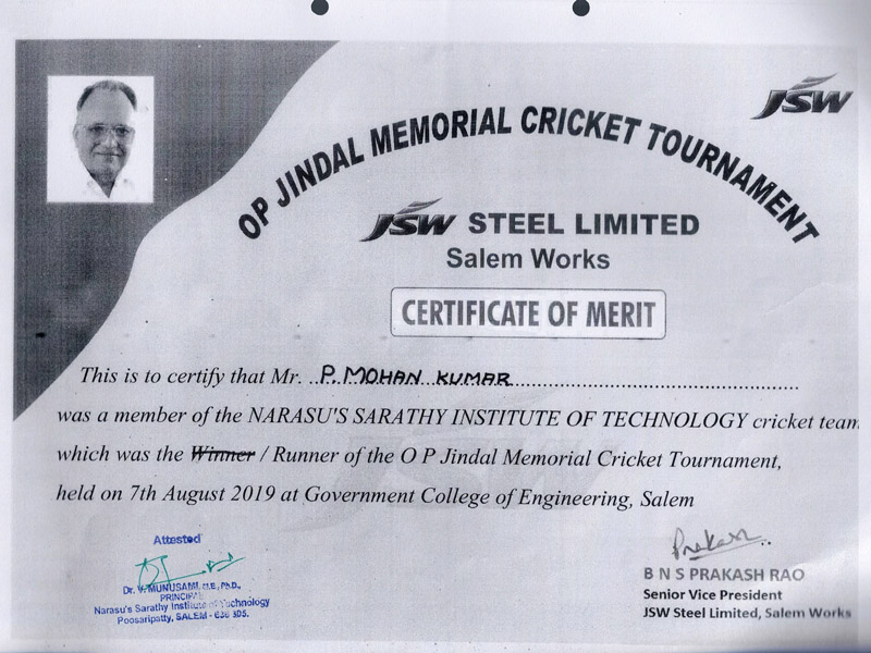 P.MOHANKUMAR OP Jindal Memorial Cricket Tournament