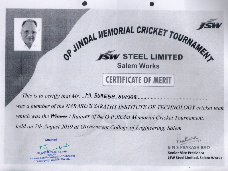 M.SURESHKUMAR OP Jindal Memorial Cricket Tournament