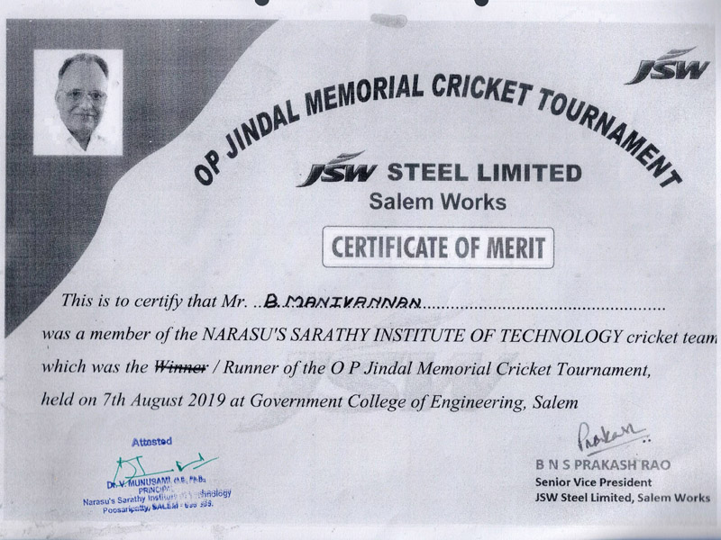B.MANIVANNAN OP Jindal Memorial Cricket Tournament