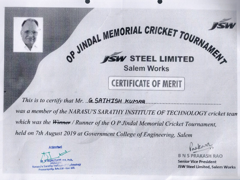 G.SATHISHKUMAR OP Jindal Memorial Cricket Tournament