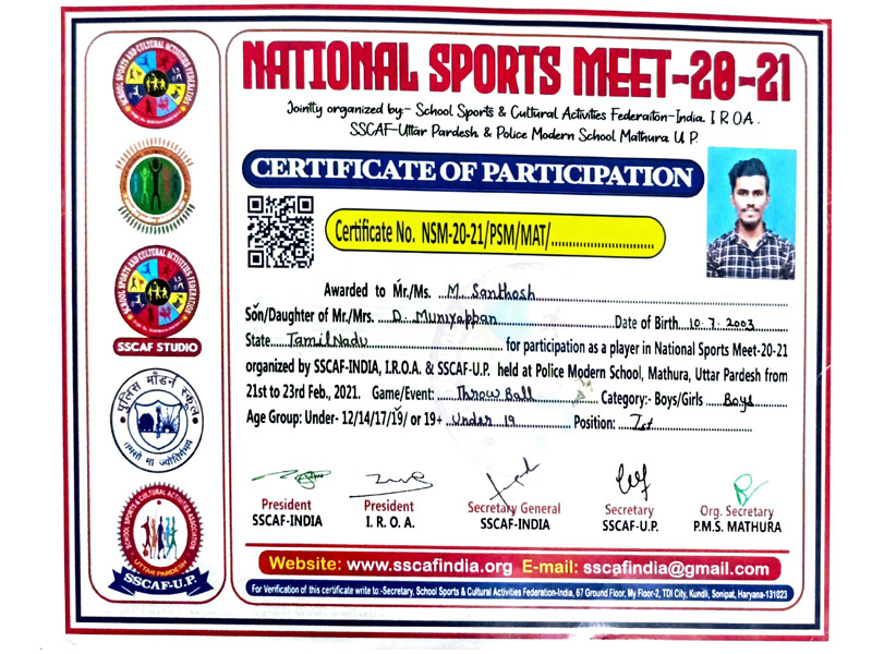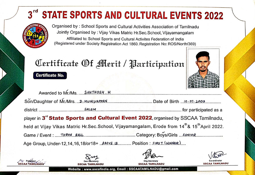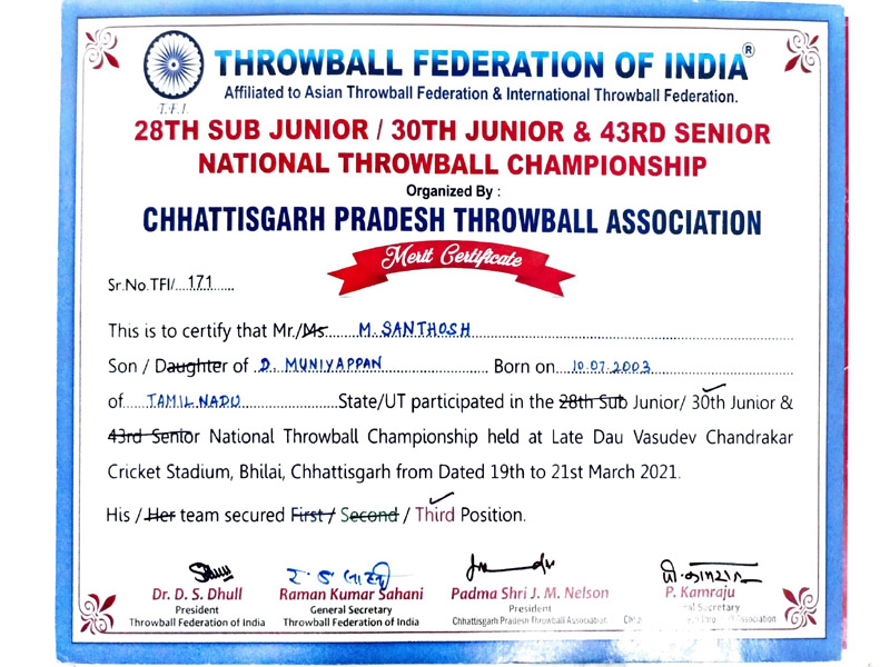 M.Santhosh 28th sub Junior 30th Junior & 43rd senior National Throwball championship