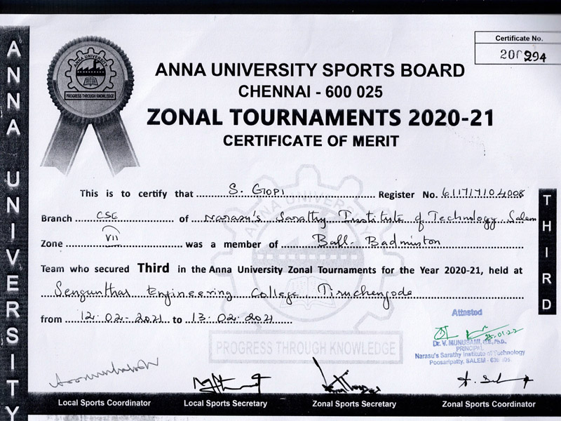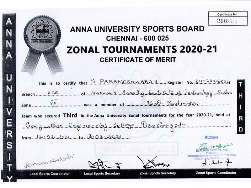 A.NARESHKUMAR Anna University Zonal Tournament 2020-21(Ball Badminton)