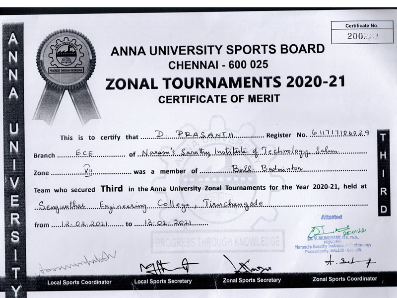 D.PRASHANTH Anna University Zonal Tournament 2020-21(Ball Badminton)