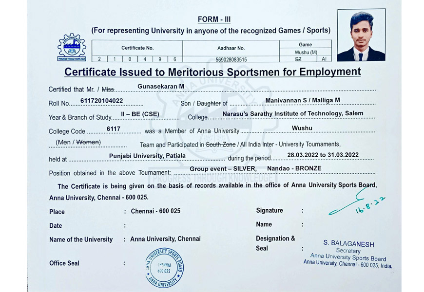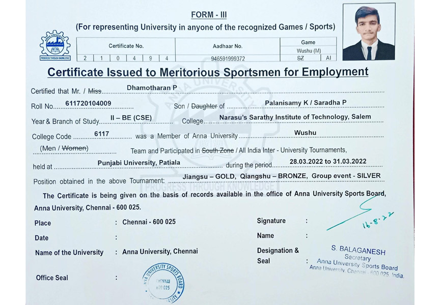M.GOWTHAMAN, Anna University Zonal Tournaments for the year 2017-18