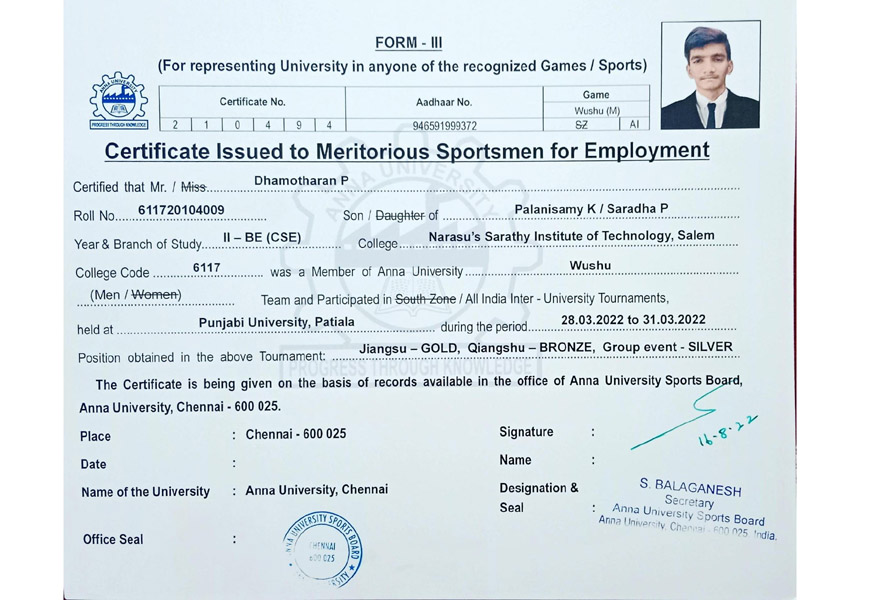Welcome to Narasu's Sarathy Institute of Technology, Salem, Tamilnadu, India